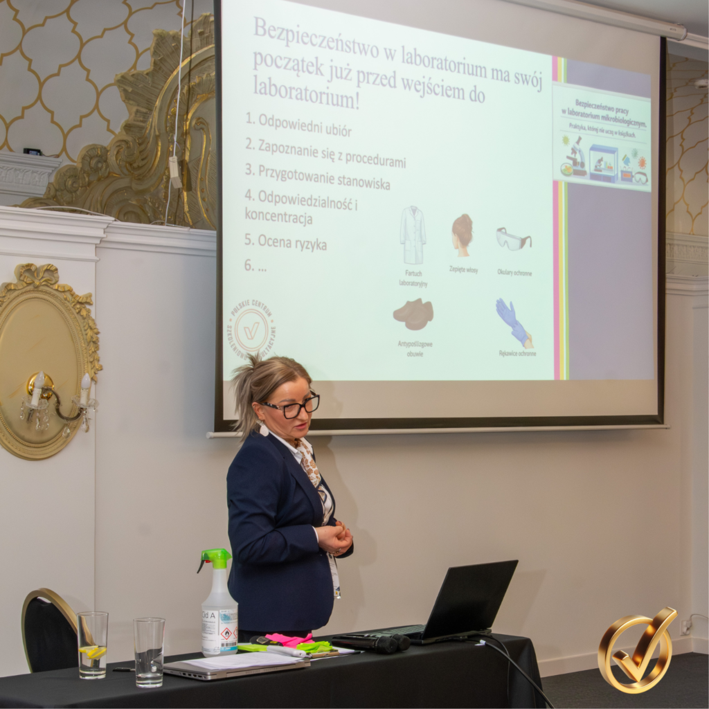 Program łączy wymagania BHP, HACCP, GLP, GHP oraz norm PN-EN z codzienną praktyką pracy w laboratorium mikrobiologicznym.